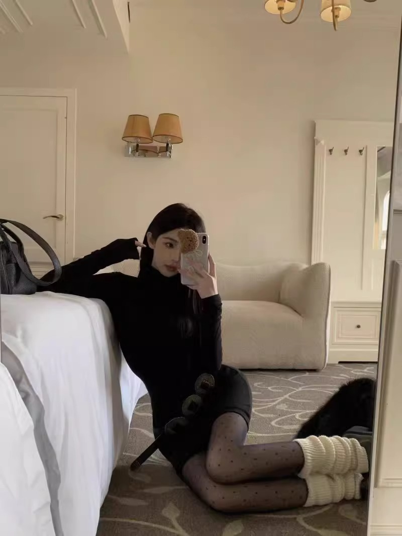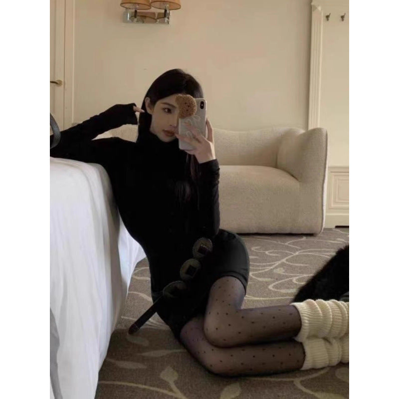 Half High Neck Black Dress for Women,Fitted Mini Dress, Bodycon Style, Slimming Inner Layer Dress