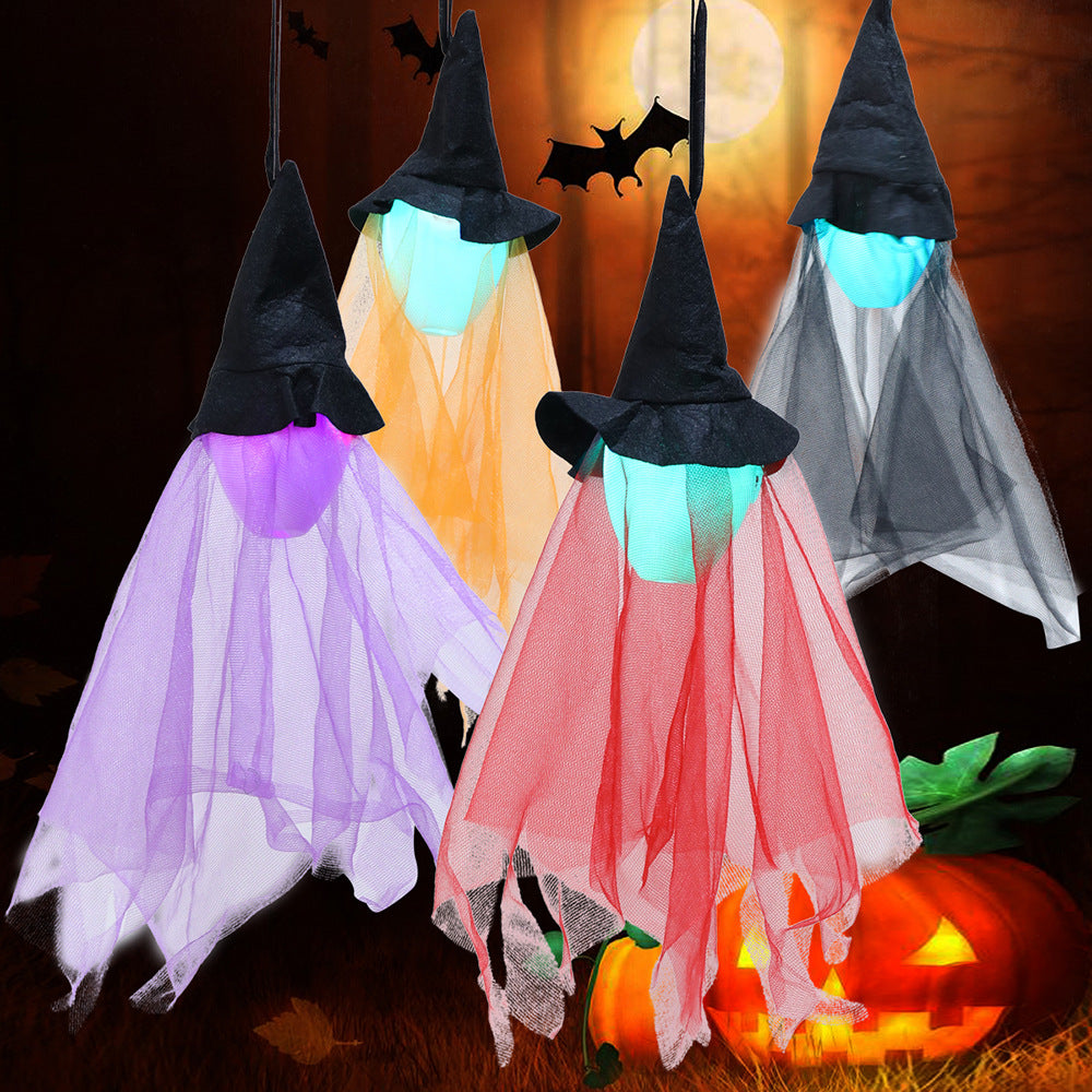 Halloween ghost hanging, glowing witch hanging, haunted house party, bar atmosphere, decoration, path, prank toys