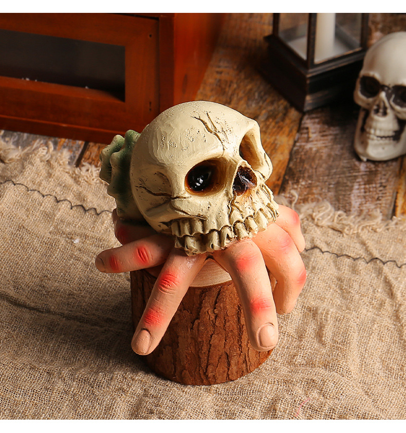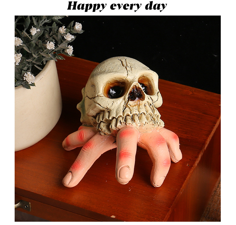Halloween skull simulation hand horror courtyard resin ornament Ghost Festival skull conch ghost hand parody decoration