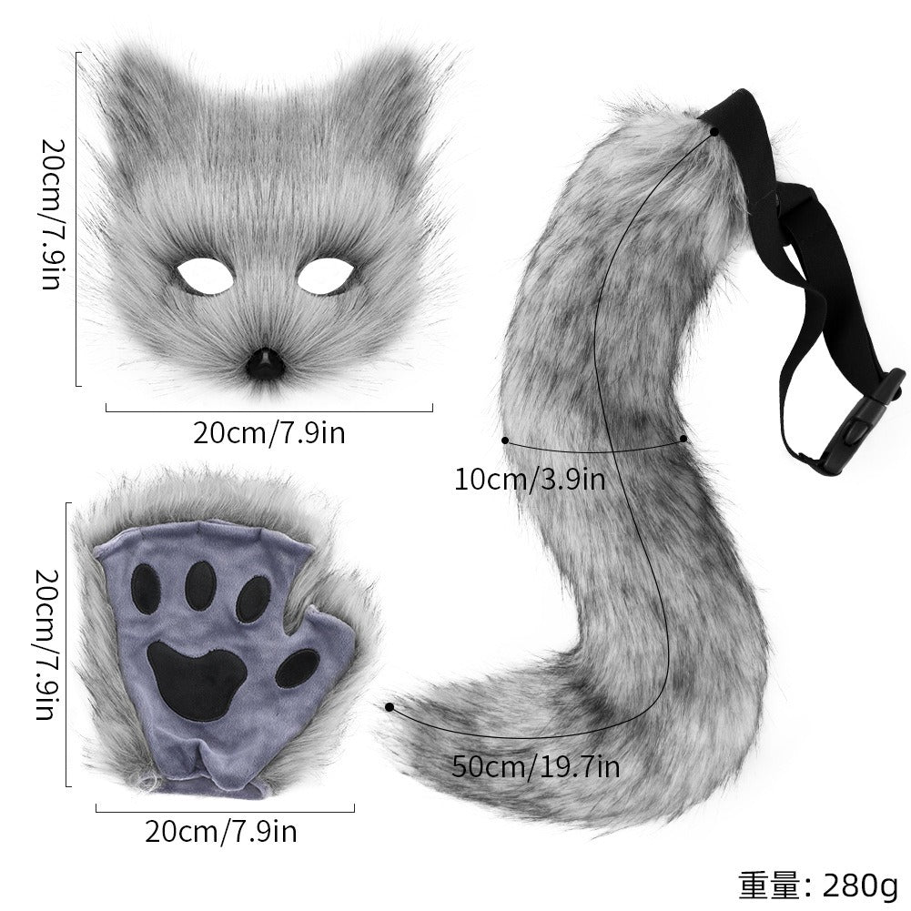 Halloween suit simulation fox mask gloves plush fox tail handmade animal tail cos prop accessories