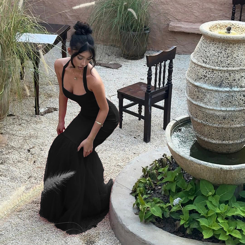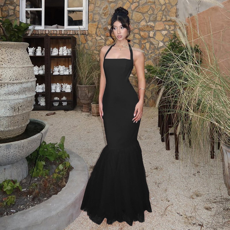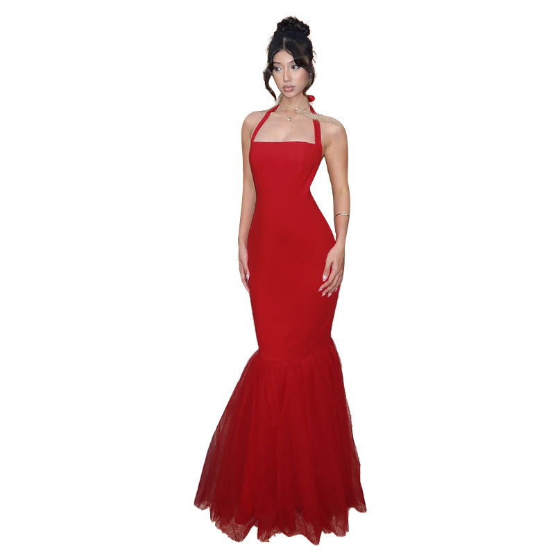 Hanging neck fish tail patchwork dress