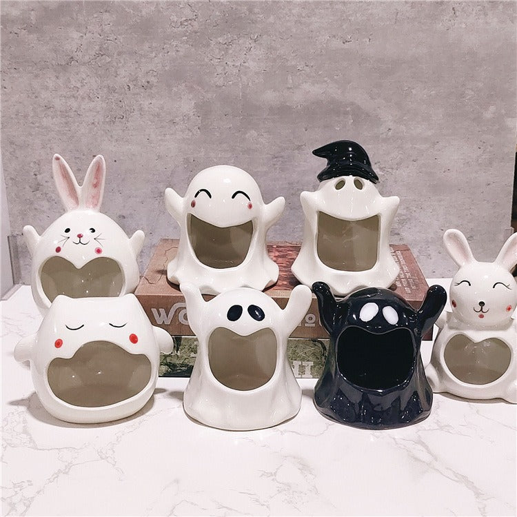 Popular Halloween Ceramic Ghost Candlestick Ware Decoration Home Table Top Scented Candle Container